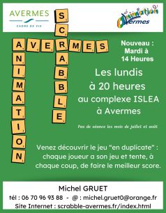 Un jeudi tous les 15 jours le club propose un après-midi Scrabble aux Résidents de la Résidence du Parc à Avermes. Les deux animatrices sont Maryse et Nicole. Prochain rendez-vous :